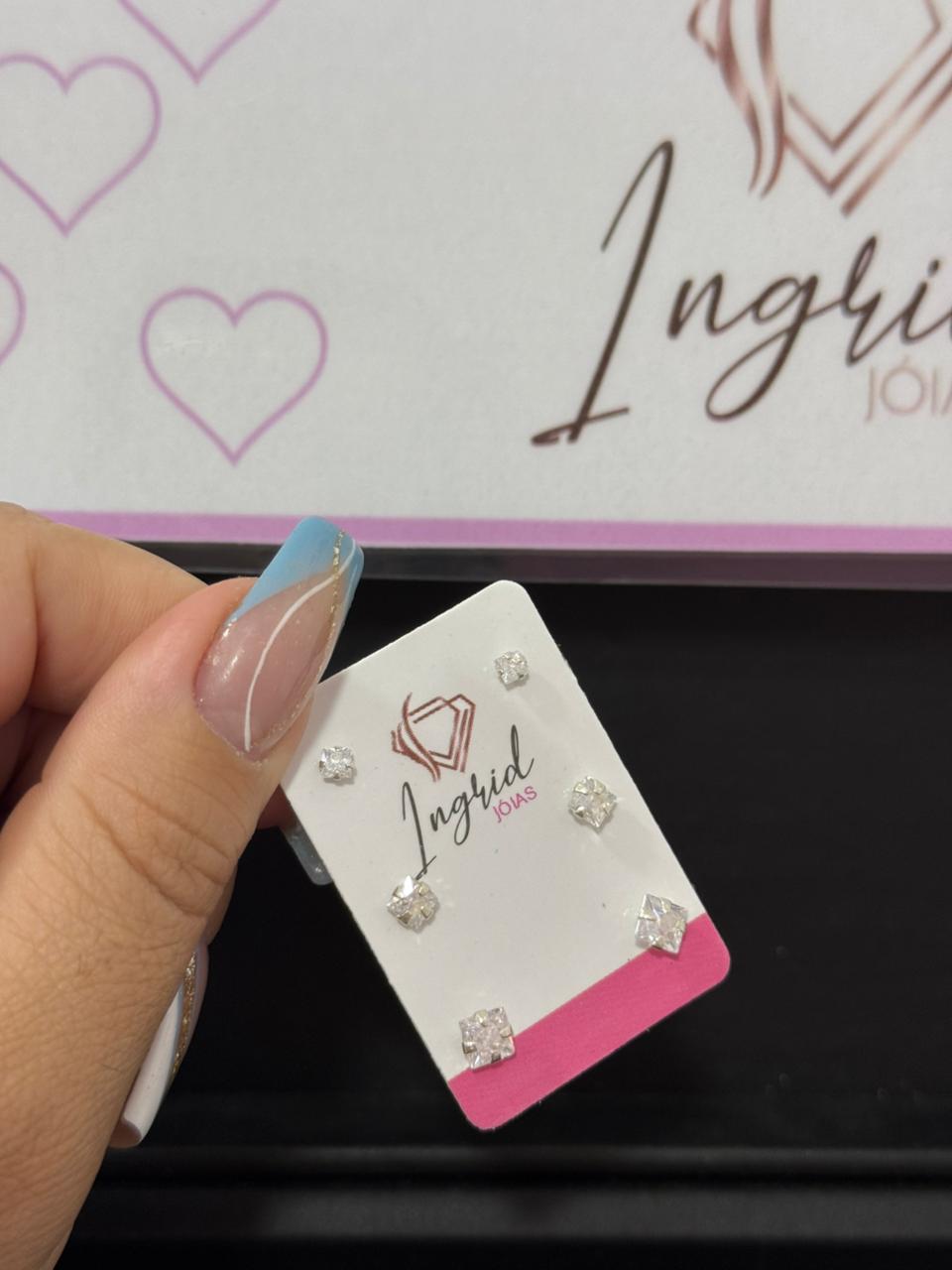 Brinco Semijoia Trio Quadrado quantidade