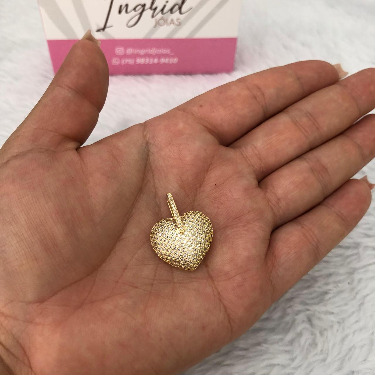 Pingente Semijoia Coração Cravejado